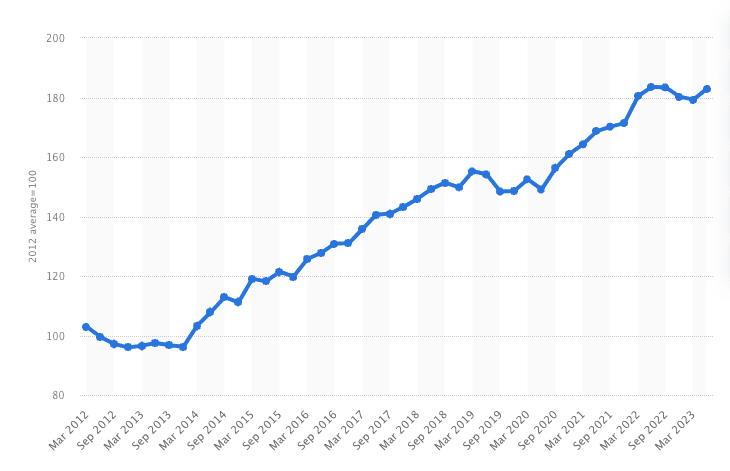National Price Index for residential real estate in Ireland from March 2012 to June 2023